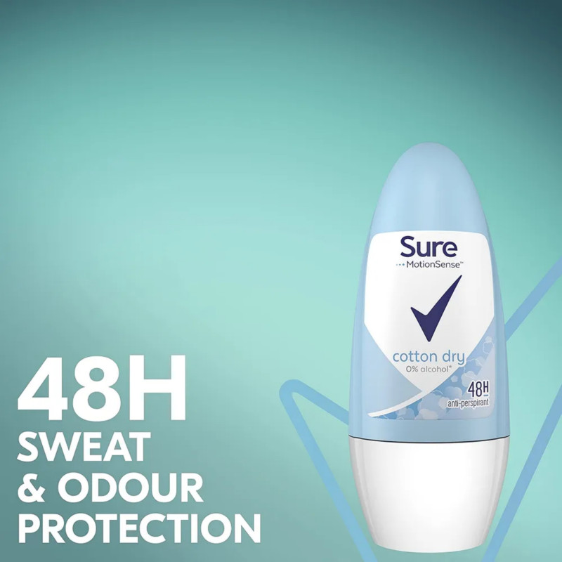 Sure Cotton Dry 48Hr Anti-Perspirant Deodorant Roll On 50ml provides reliable protection to keep you dry and confident for up to 48 hours. Its advanced anti-perspirant formula helps effectively reduce sweat and prevent odour throughout the day. The soft cotton dry fragrance delivers a clean, light, and comforting scent. Designed to keep underarms feeling fresh and comfortable in all conditions. The smooth roll-on applicator ensures easy and even coverage. Quick-drying formula absorbs fast without leaving a sticky or wet feel. Helps maintain dryness during busy days and active moments. Suitable for everyday use and all skin types. Dermatologically tested for skin safety. Leaves underarms feeling soft, clean, and cared for. Compact 50ml size is ideal for travel or daily use. Provides dependable protection from morning to night. Works effectively under stress and heat. Offers long-lasting freshness with a gentle scent. A perfect choice for trusted dryness and comfort.