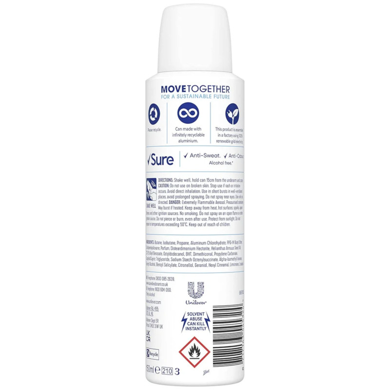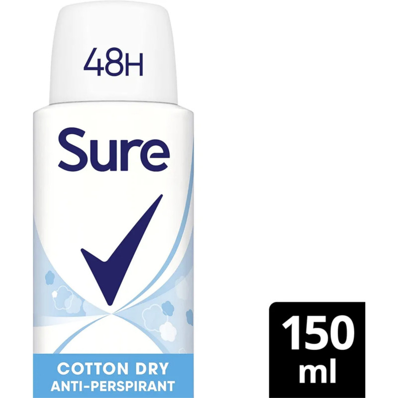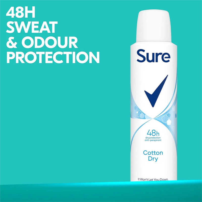 Sure Cotton Dry 48Hr Dry Protection Anti-Perspirant Deodorant Spray 150ml offers long-lasting protection against sweat and odor while keeping underarms fresh and dry for up to 48 hours. Its advanced formula ensures reliable anti-perspirant performance without leaving sticky or greasy residue. Infused with a soft, clean cotton fragrance, it provides a fresh, subtle scent that lasts throughout the day. Quick-drying and lightweight, it absorbs instantly for comfortable wear. Dermatologically tested, it is suitable for all skin types, including sensitive skin. Helps maintain underarm dryness and confidence during busy or active days. The convenient spray format ensures even coverage and effortless application. Ideal for work, workouts, casual outings, or special occasions. Protects against unwanted odors while leaving a pleasant, gentle fragrance trail. Compact and travel-friendly, perfect for on-the-go freshness. Supports smooth, soft, and well-cared-for underarms with every use. Non-irritating formula allows repeated application without discomfort. Keeps you feeling confident, fresh, and odor-free all day. Sure Cotton Dry 48Hr Anti-Perspirant Deodorant Spray 150ml combines effective protection, long-lasting freshness, and skin-friendly care.