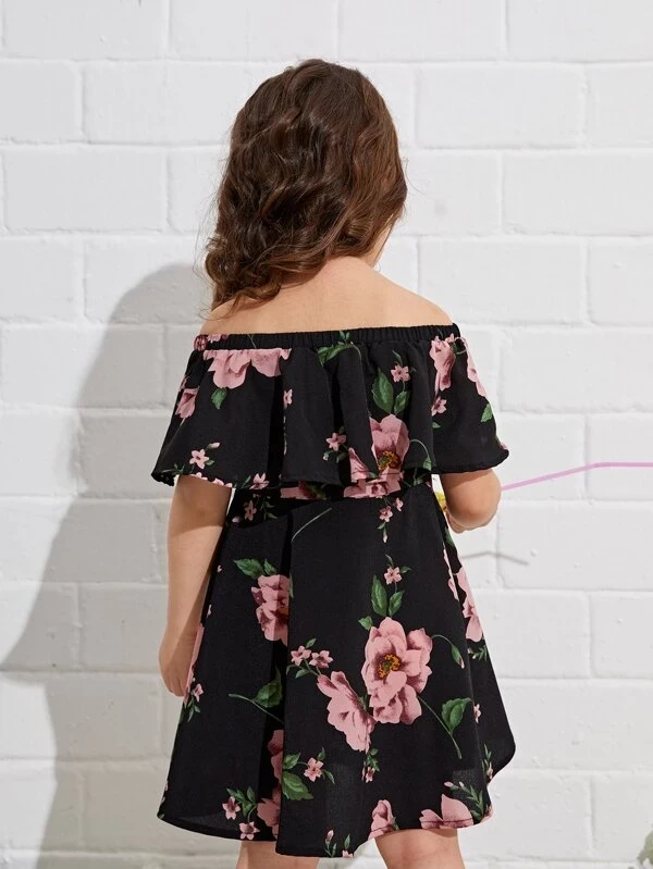 Toddler Girls Off Shoulder Ruffle Trim Floral Dress
