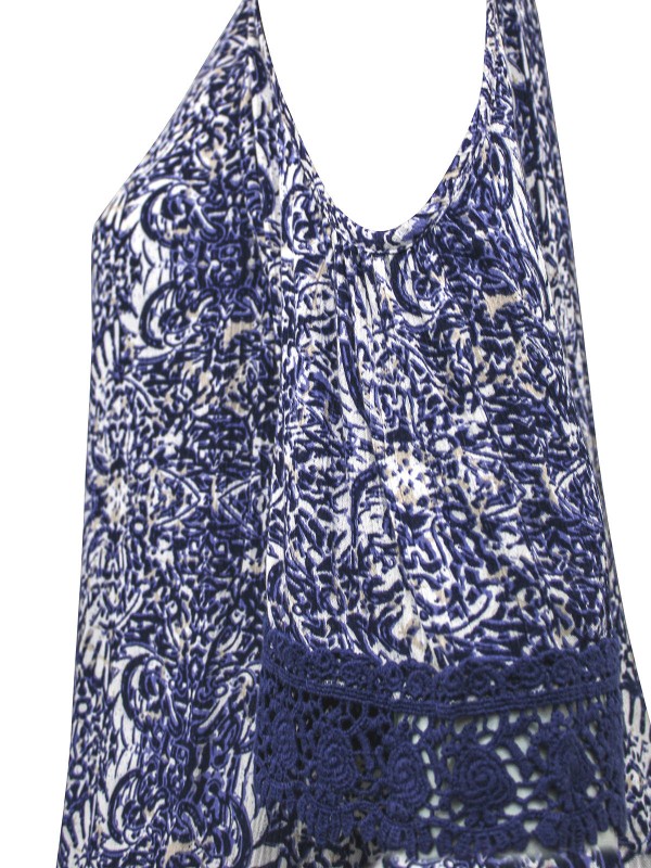 Porcelain prints are a must-have for the summer season! This printed cold shoulder dress features cold shoulders with short sleeves and lace trims. Length 36in.