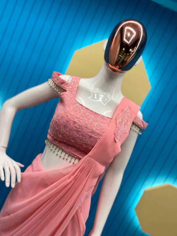 TRENDING STYLE NEW FANCY READY TO WEAR FAUX GEORGETTE SEQUENCE PATCH WORK SAREE AND FULLSTITCHED BLOUSE