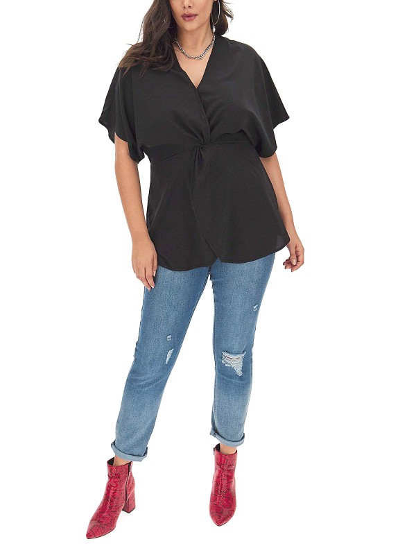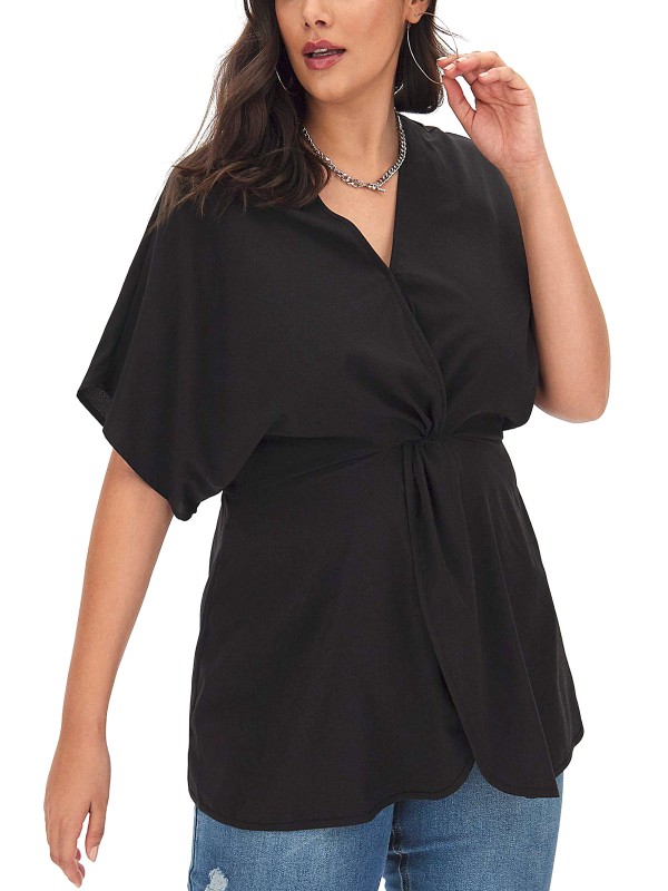 This twist front top is the perfect next addition to your wardrobe. Featuring a stylish twist front it can be dressed up with leather trousers and heels for an evening. Length 27in.