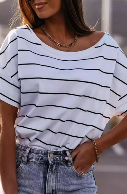 Embrace the latest style with this summer casual top featuring thin monochrome stripes and a comfortable crew neckline. Comes with short comfortable sleeves and features a soft, stretchy fabric. This one size top is available in approx. sizes of: One Size (UK 8-12 - fits between size 8 up to size 12) with an approx. length of: 25"(64cm). Made in Italy with 85% Viscose and 15% Elastane. This top is both trendy and versatile and is the ultimate must-have style for your wardrobe.
