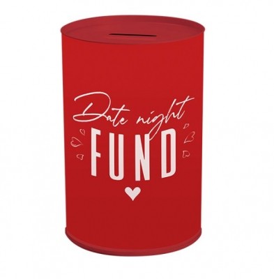 | VALENTINE'S DAY MONEY TIN This delightful Valentine-themed money tin is the perfect way to save pennies for a romantic getaway or date night. This ruby red money tin features a charming greeting that reads " Date night Fund". Ensuring you save for those special moments; this money tin keeps money safe and secure with a slot opening. This money jar is constructed from a durable tin material and weighs 0.117kg measuring (w) 15.3 x (h) 9.7cm. Product Dimensions: 15.3x9.7x9.7cm Packaged Weight: 0.117kg Materials: Tin Packaging: Barcode Label to Base |