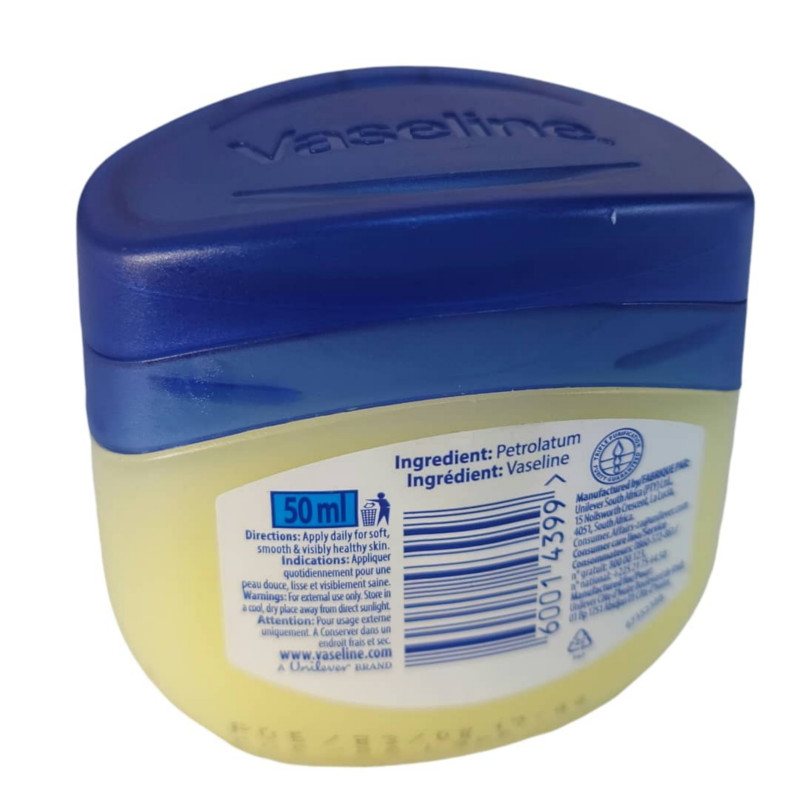 Vaseline Pure Petroleum Jelly Original 50ml is a multi-purpose skin protectant formulated with 100% pure, triple-purified petroleum jelly that helps lock in moisture and support natural skin recovery. Its gentle, hypoallergenic formula creates a protective barrier that shields dry, cracked, or irritated skin from external elements while allowing it to heal naturally. Ideal for use on chapped lips, dry elbows, knees, heels, and minor cuts or scrapes, it delivers long-lasting moisturisation and softness. The smooth, non-greasy texture glides easily onto the skin and absorbs slowly to provide deep nourishment throughout the day. Suitable for all skin types, including sensitive and baby skin, it offers a safe and effective solution for everyday hydration needs. This versatile jelly can also be used to prevent diaper rash, soothe rough patches, and protect skin from windburn during harsh weather. Its small 50ml size makes it perfect for travel, handbags, and on-the-go use. Dermatologically tested, it is free from fragrances and irritants, ensuring a pure and gentle experience. Regular use helps restore the skin’s natural softness and maintain a healthy moisture balance. Whether for beauty routines, first aid, or daily moisturising, this classic petroleum jelly remains a trusted essential for reliable skin care.