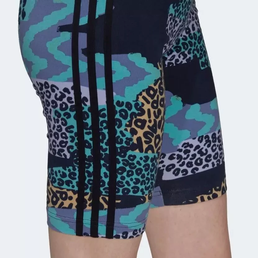 Description: Women’s Adidas x Farm ‘Rio 3 Stripe’ bike shorts. Features an Adidas logo on the front and three stripes down each side.