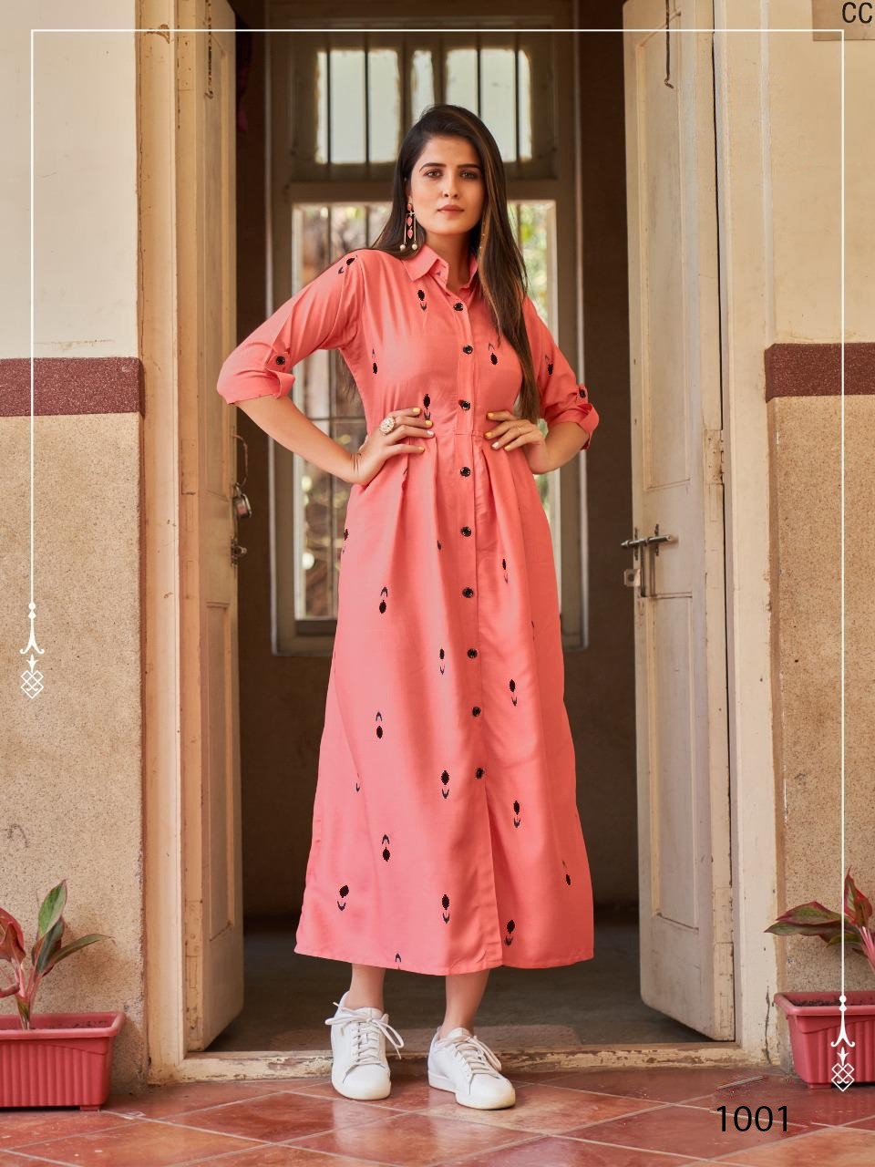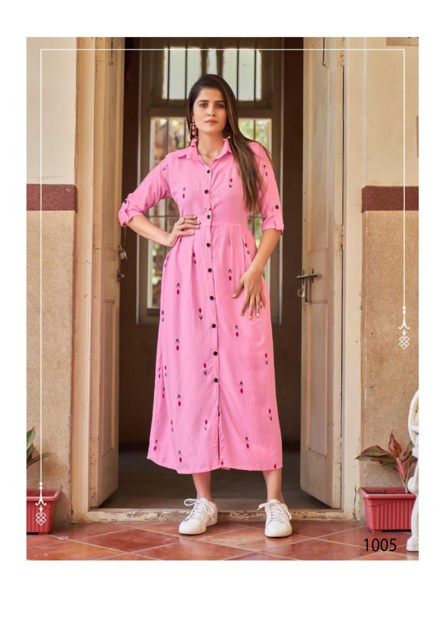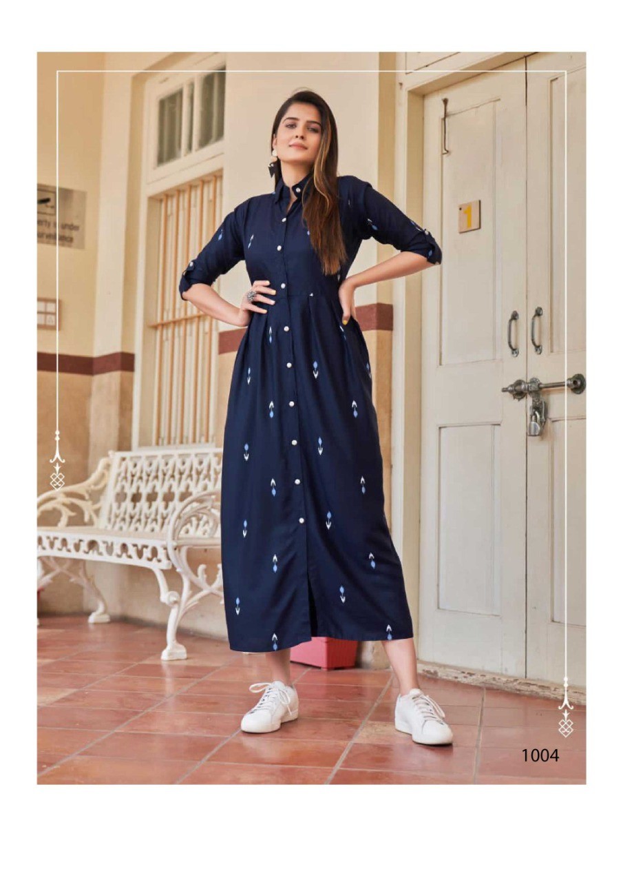 MAKE THE LITTLE GIRL YOU USED TO BE PROUD OF THE WOMAN YOU ARE NOW. A beautiful maxi dress in Rayon (14-KG) fabric with Digital Printand with Upto 48 Inch Length and slit in front and full Botton line and 3/4 sleeves.