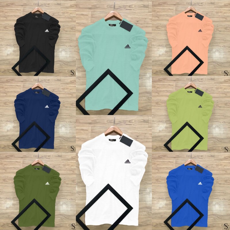 BRAND ADIDAS 10@ QUALITY EMBRIODERY LOGO 4BY4 LYCRA FABRIC ROUND NECK FLORENCENT COLORS FULL SLEEVE T-SHIRTS 100% SOFT FABRIC BEST IN QUALITY SIZE :- M L XL