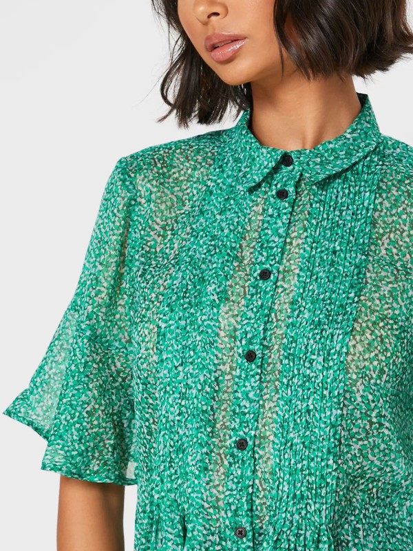 The Alving blouse is a sweet and smart style for day into evening. This lightweight blouse boasts an all over print and flute sleeves for a feminine flair, whilst the bodice is fashioned with a collared neckline leading to the button-up fastening. Length 25in.