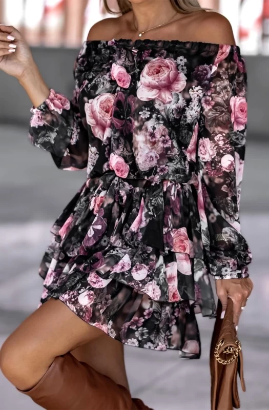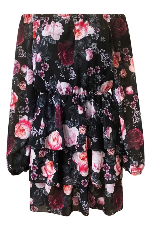 All over florals with elasticated bardot/off shoulder detail