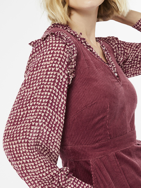 This timeless Connie Cord Dress is great for blending textures into your daytime ensemble. Detailed with a plunge neckline, this pure cotton dress is shaped with an empire waist and rounded off with a slight flare to the hem. Length 36in.