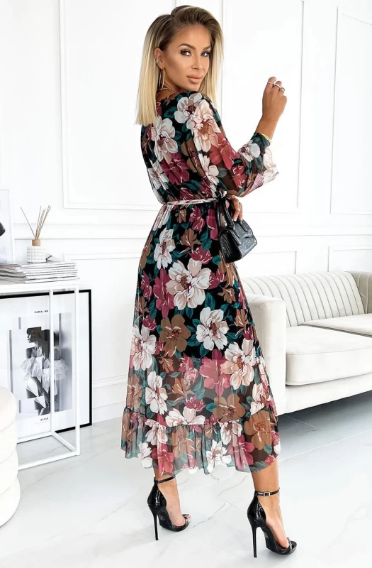 All over florals with low cut 'V' front wrap neckline
