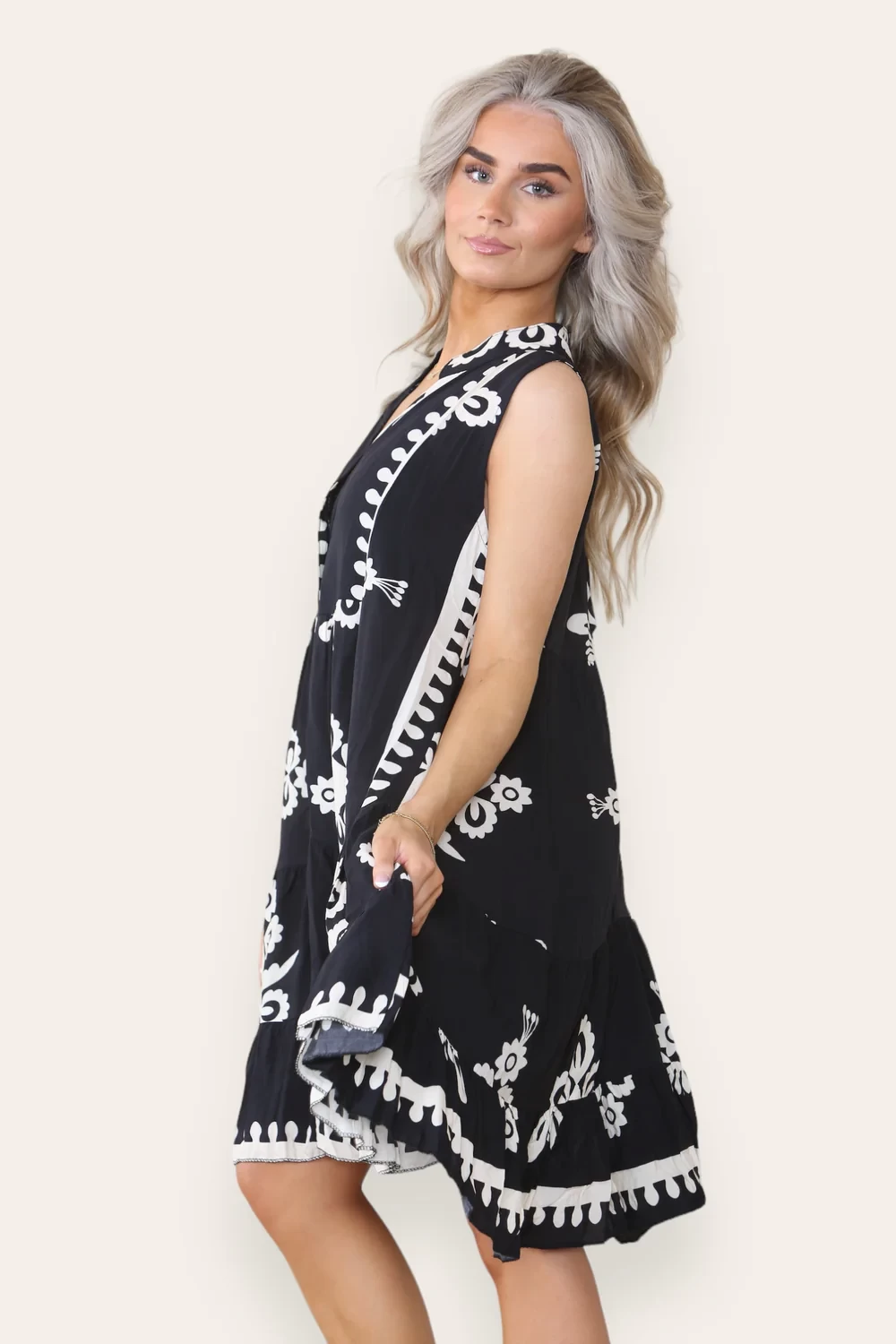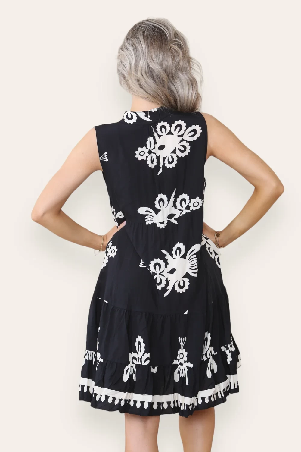 PRINTED SLEEVELESS SMOCK DRESS