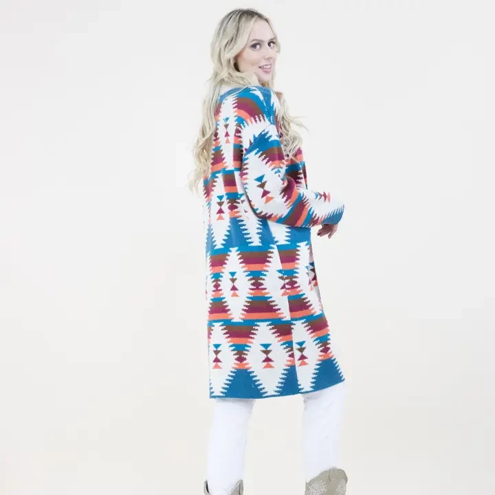 AZTEC DIAMOND PATTERN CARDIGAN COLOR : TURQUOISE