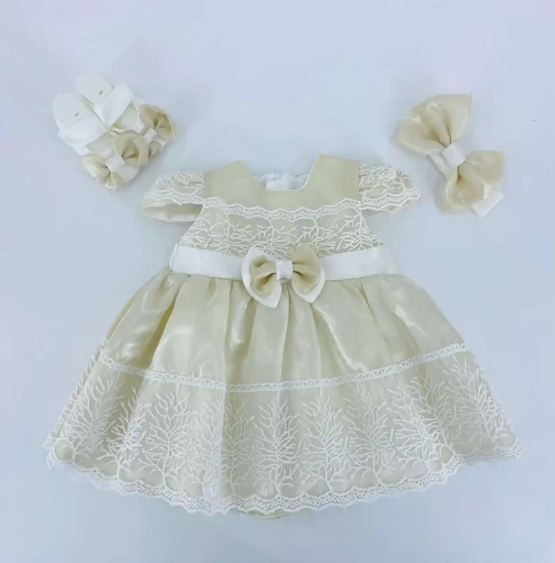 Baby Girls Embroidered Bead Party Dress With Headband & Shoes (6-24M)