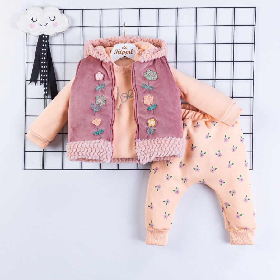 Baby Girls Three Piece Flower Fur Gillet Set (9-18M)