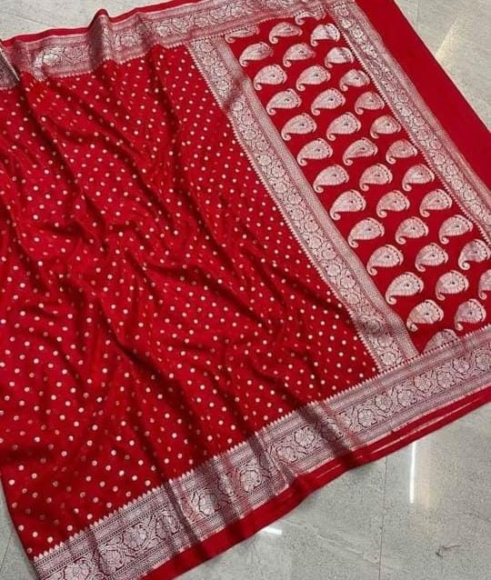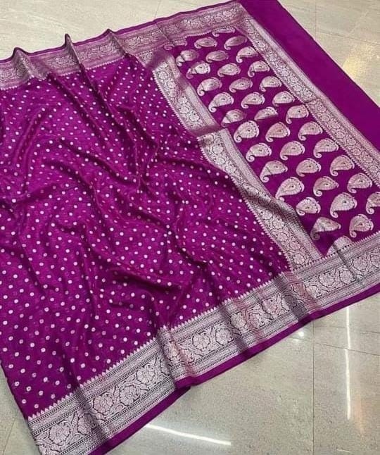 | Banaarsi katan khaddi georget poor looking silwar zari fancy border fancy Colors full body 2day fancy saree contrast rich pallu* Material : katan semi georget khaddi silk zari |