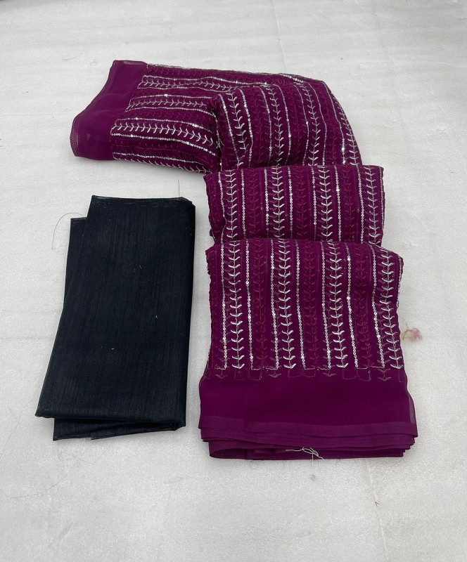 Fabric Details Full Saree Of 60 Gram Georgette With Heavy Sequence Work Sequence Work Done On sareee BEAUTIFUL SEQUINS WORK ALL OVER SAREE ( till 5.5 full work is there ) BLOUSE-SILK Beautiful Border