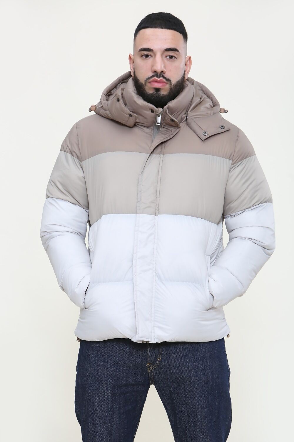 BEIGE HEAVY PUFFER JACKET COAT WITH CONTRAST COLOUR