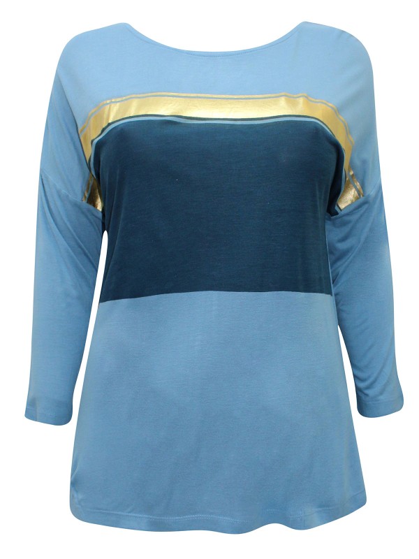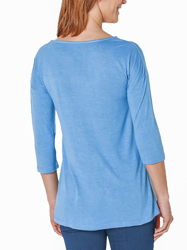 This top was made for dress-down days. Made from a comfortable jersey fabric, it features a stripe print with a scoop neckline and 3/4 length sleeves.