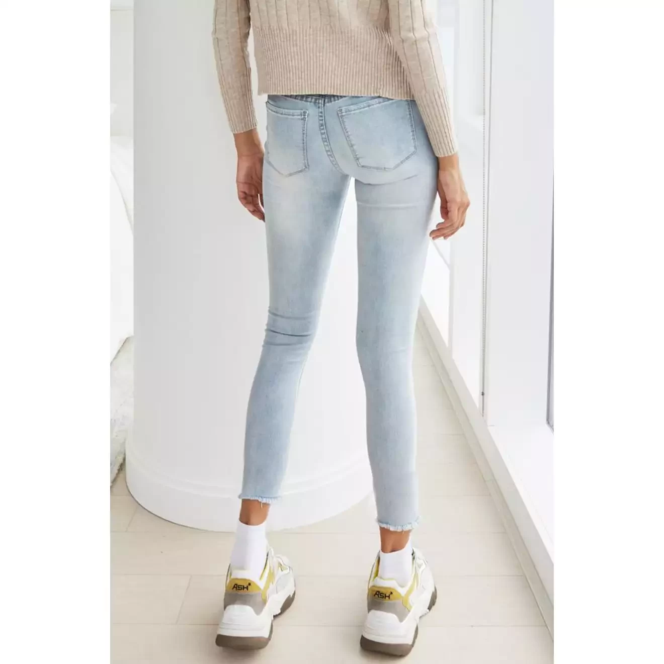 blue skinny jeans with raw hem size 10