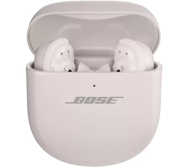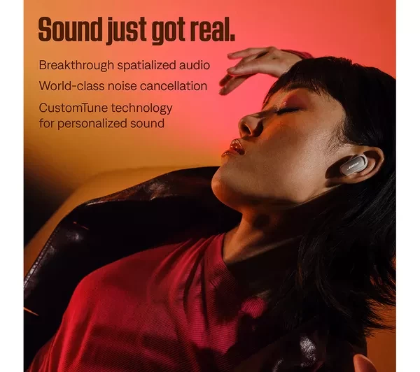 Getcha groove on with these Bose QuietComfort Bluetooth earbuds. Bose Immersive Audio adds depth and a sense of space to your favourite tracks so they feel more real. It's like someone lifting your tunes from your head and dropping them in the acoustic sweet spot right in front of you. CustomTune technology analyses the shape of your ears and adjusts the sound and active noise cancelling so it's perfect for you. Think of it like having your own personal sound guy following you around. And the umbrella shaped tips are super comfortable and feel great in your ears, whether you're going hard at the gym or relaxing in your favourite chair.