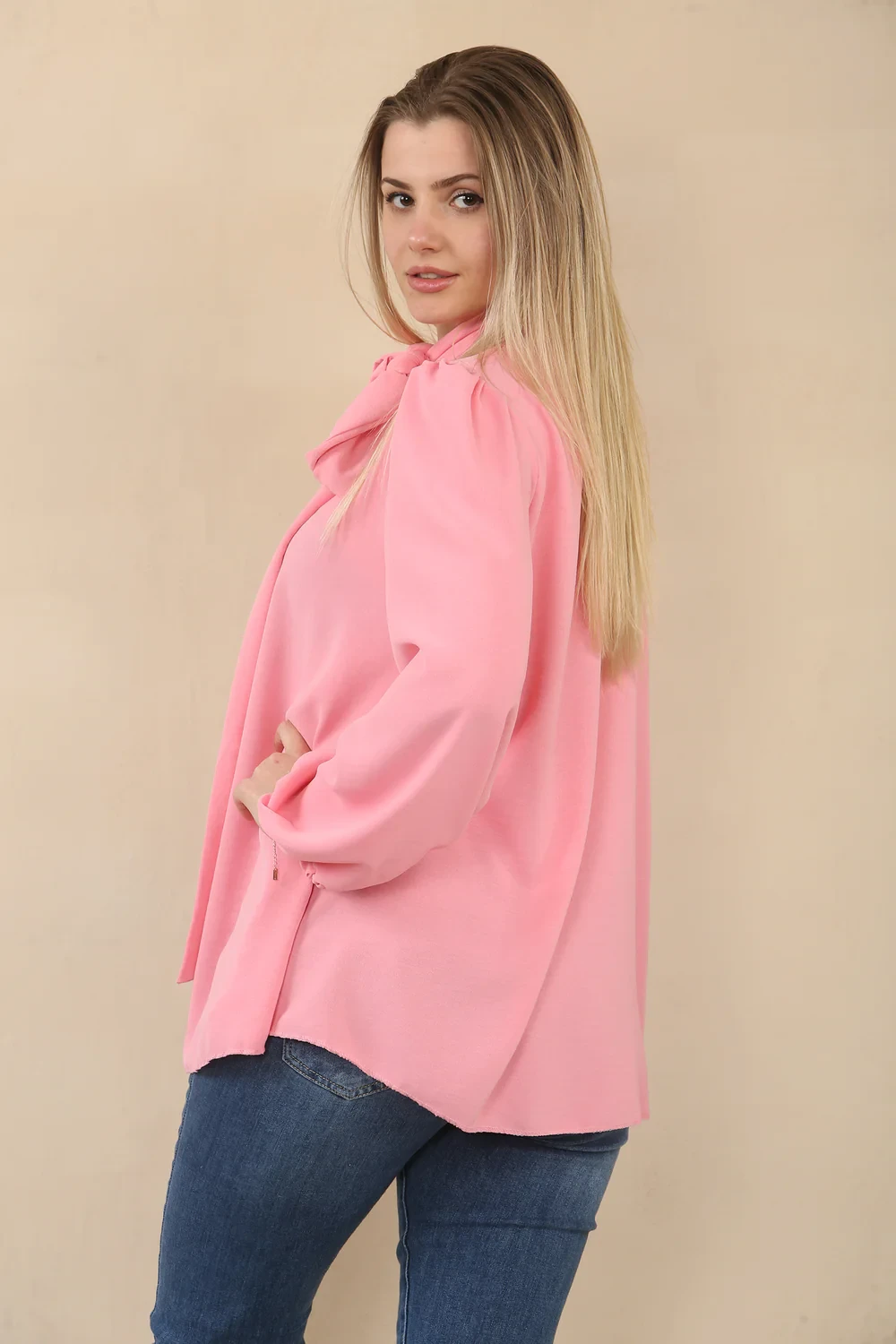 BOW BASIC BLOUSE - PINK