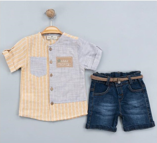 Boys Stripe Summer Shirt & Denim Shorts Set with Belt (2-5Y)
