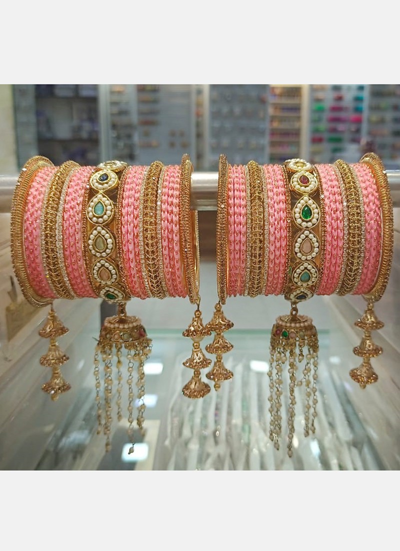 Beautiful Dotted Pearls Bangles Set With Pearl And Jhumki Collection