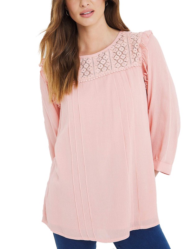 This stunning blouse is a great choice to dress up or down and is designed in a subtle textured fabric. It features a broderie yoke, frill detailing to the shoulder and keyhole opening to the back of the neckline. Length 27in/69cm.