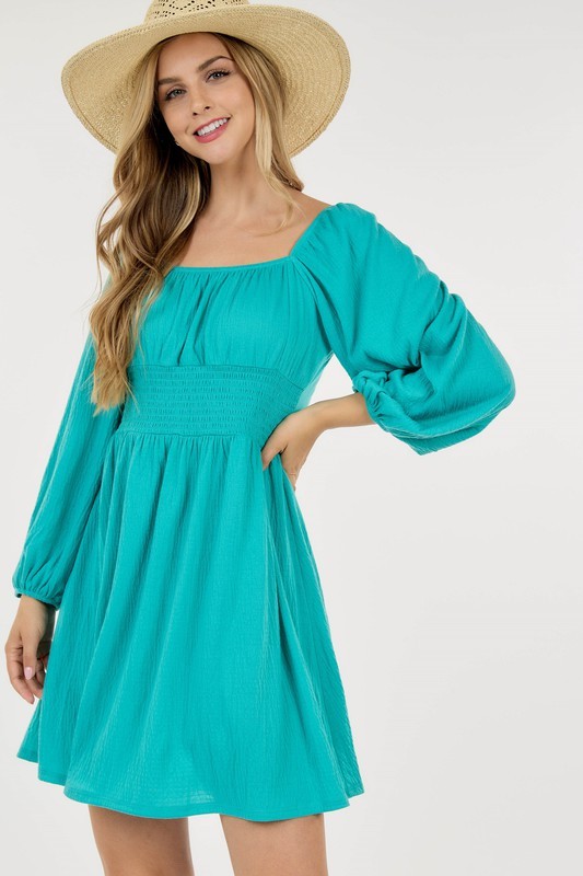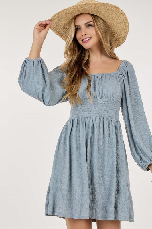BUBBLE LONG SLEEVE SHORT DRESS