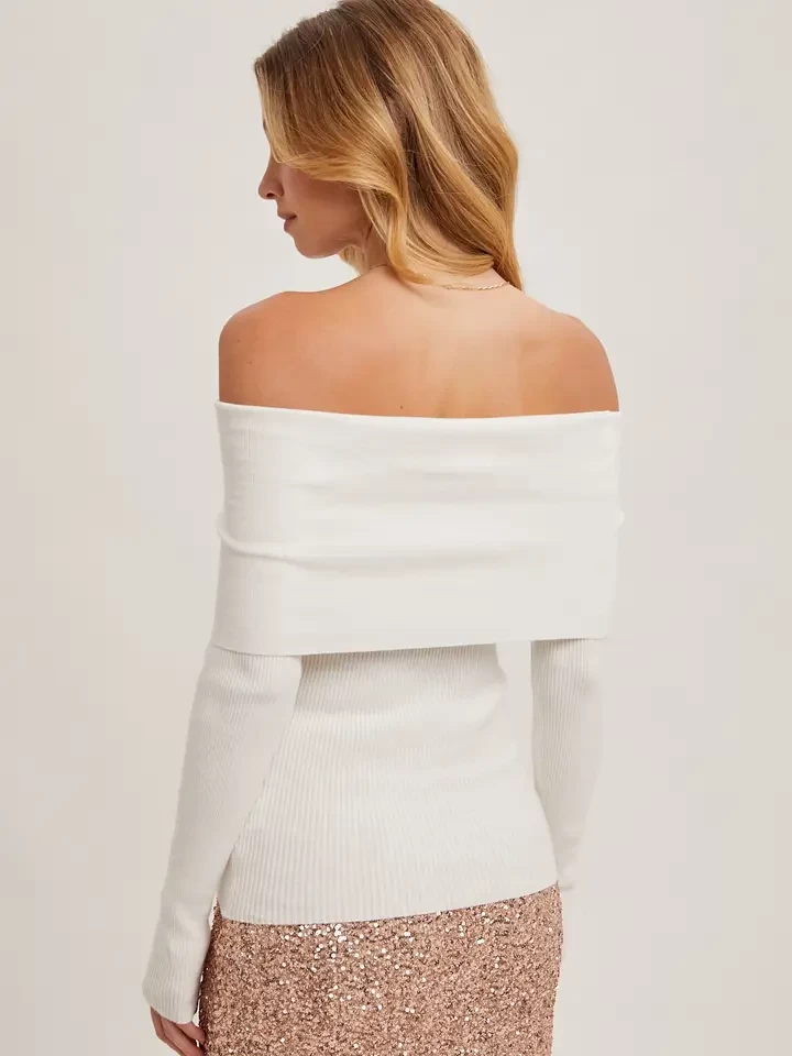 The off-shoulder ribbed knit top is a stylish and versatile piece that adds a touch of elegance to any outfit. Designed with an off-shoulder neckline, it beautifully highlights the collarbone, offering a flattering and feminine silhouette. The ribbed knit fabric provides a snug yet comfortable fit, accentuating your curves while maintaining a casual chic vibe. Perfect for pairing with high-waisted jeans, skirts, or layered under a jacket, this top is a great choice for both casual outings and more dressed-up occasions. -Model is 5'9" and wearing a Small
