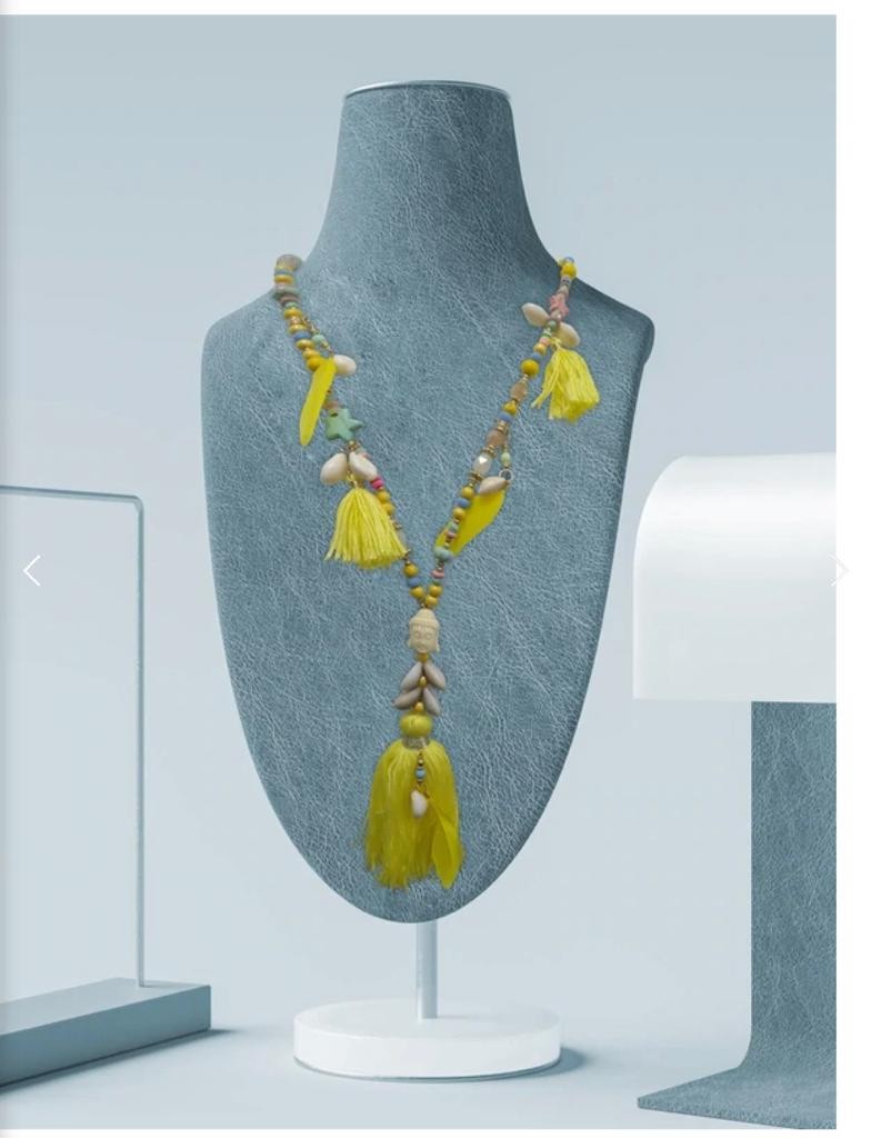 Make a statement with this buddha & feather necklace it has fashionable elegance to update any outfit.