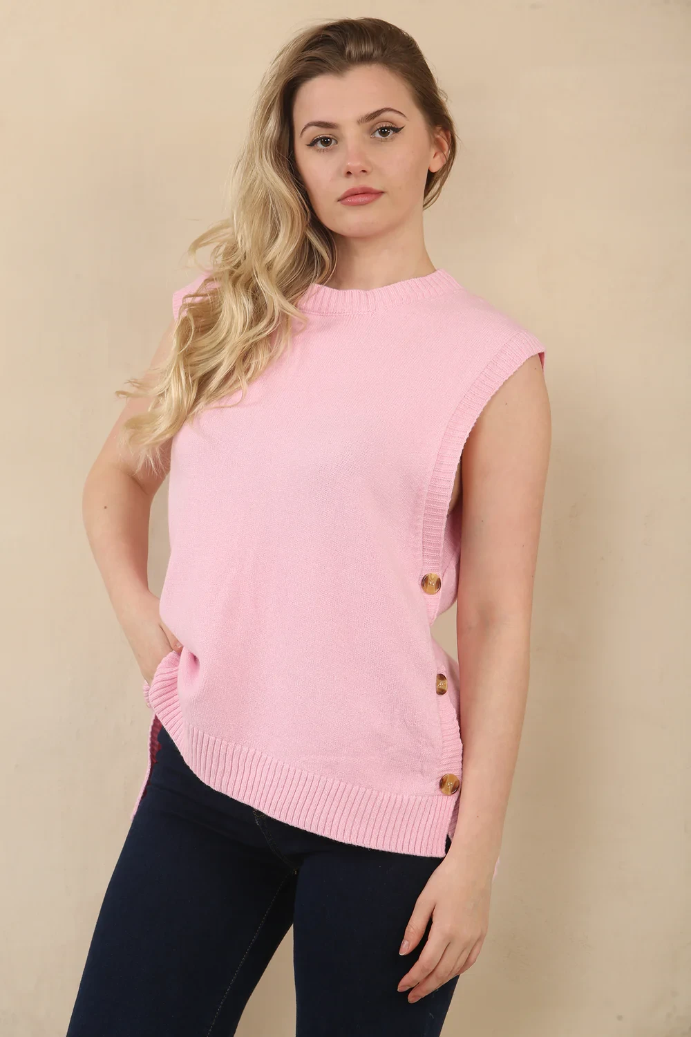 BUTTON DETAIL KNITTED VEST