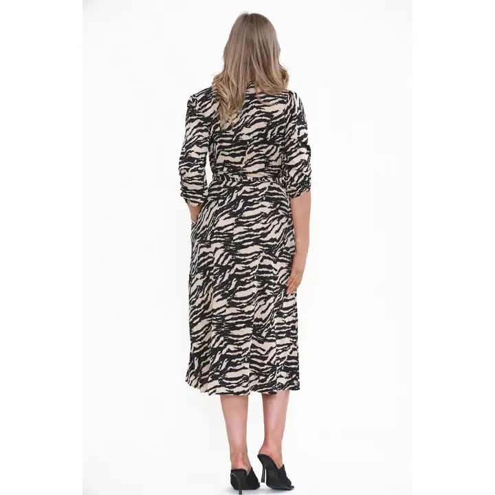 This flattering wrapped dress is perfect for all occastions. - V Neck, with wrapped front, tailor it yourself to decide the depth of the V-Neck - Fits true to size - Midweight, non-stretchy fabric - Composition: 100% Polyester