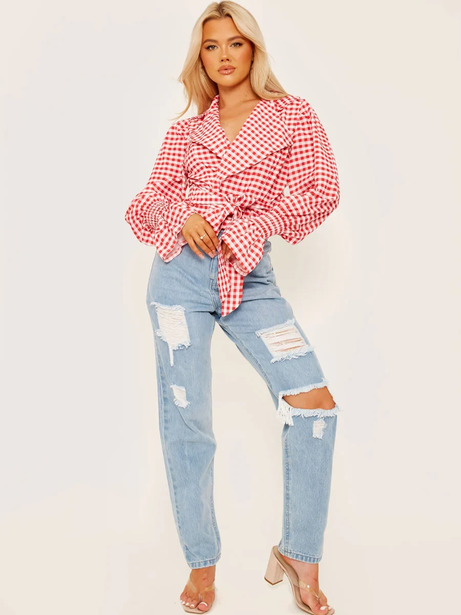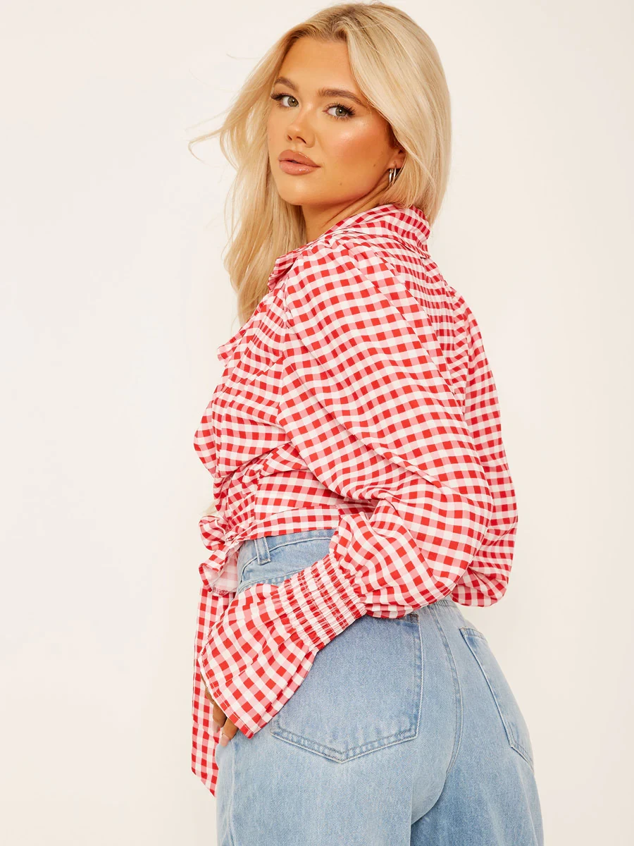 Checked Wrap Front Tie Knot Top