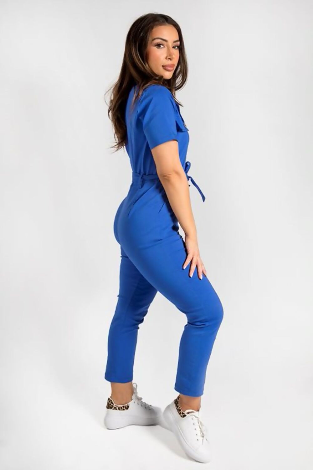 COBALT BENGALINE BELTED JUMPSUIT