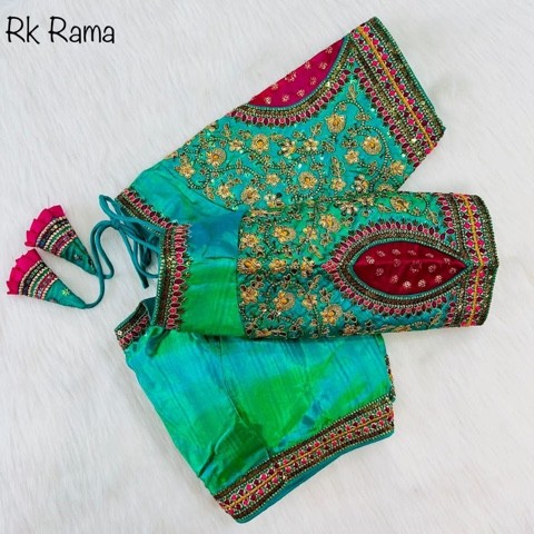 *Copper Jari + Gold Codding Heavy Embroidery Work Blouse *