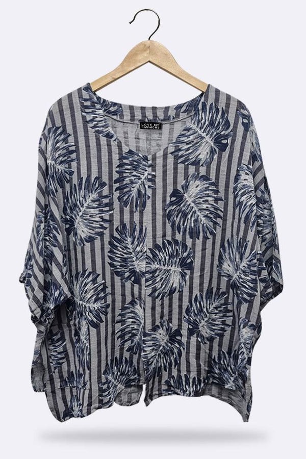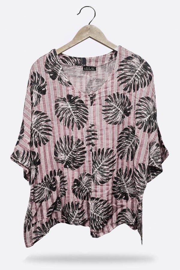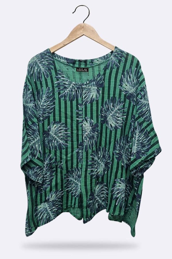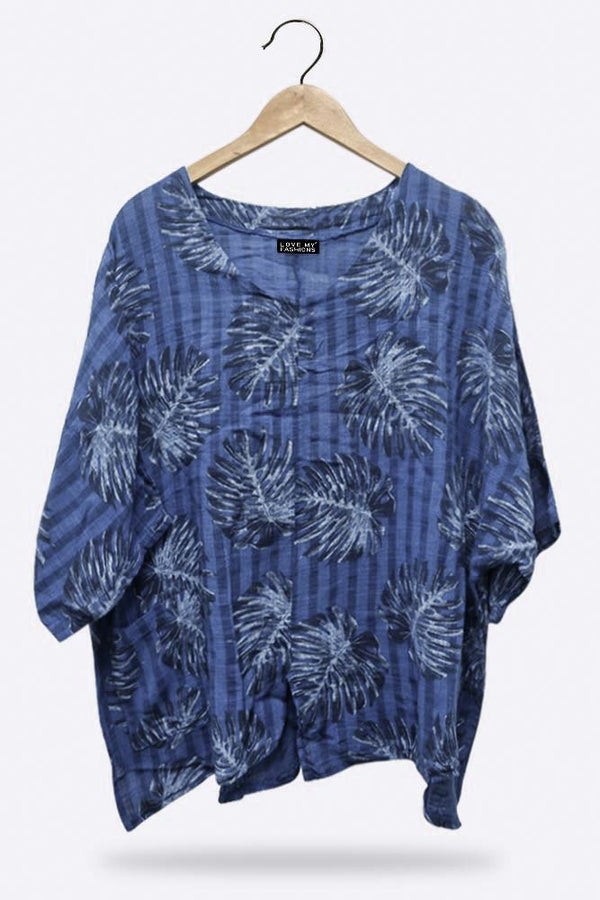 Made in loveable material these are must for any store this season. Features palm leaf print-casual top-beautiful length-one size fits perfectly-italian top.