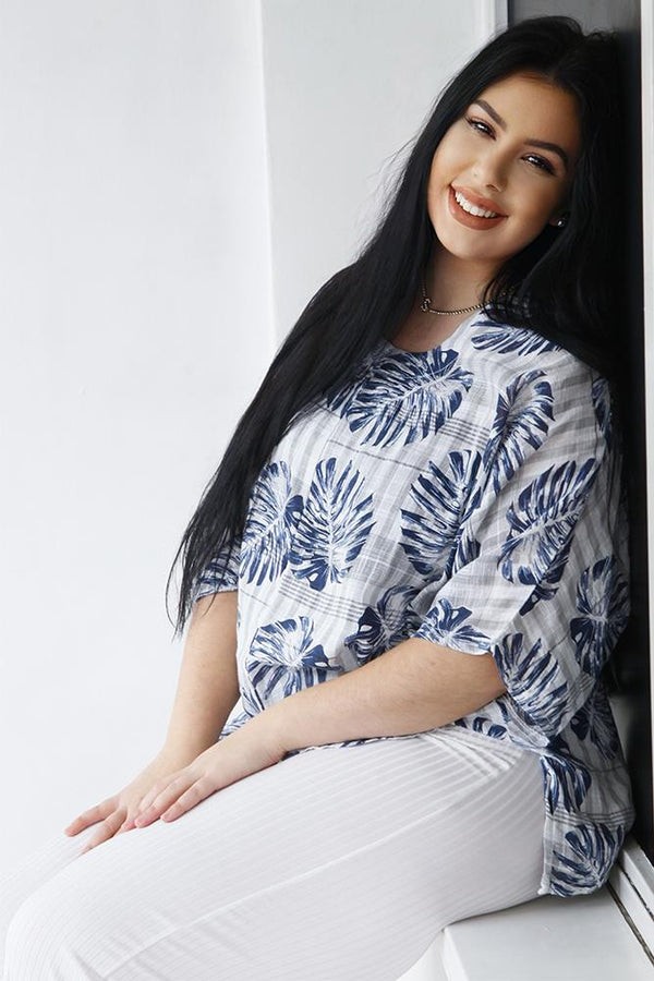 Cotton Palm Leaf Kaftan Top