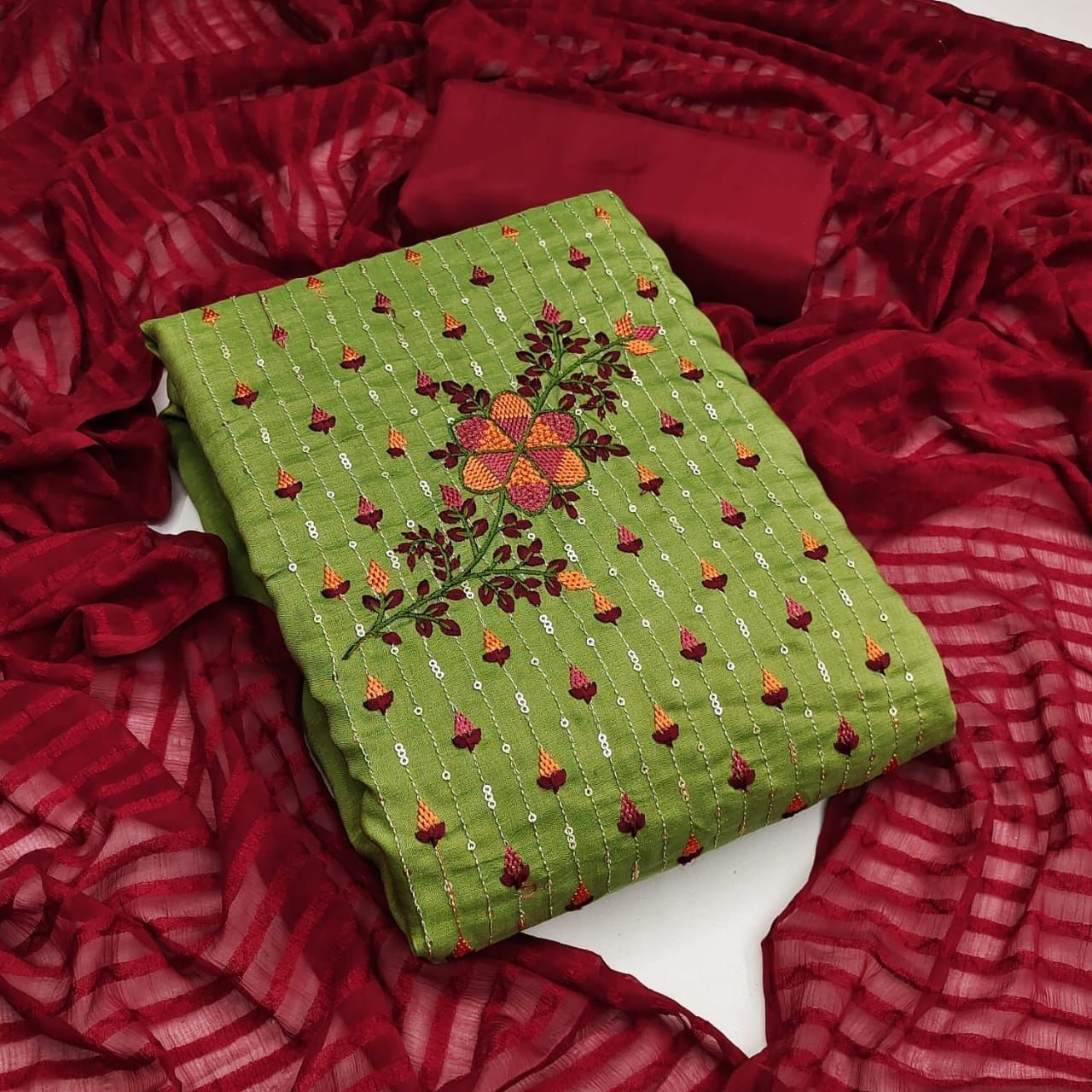 Top Fabrics :- COTTONBottom Fabrics :- COTTONDupatta:- CHINON PATI