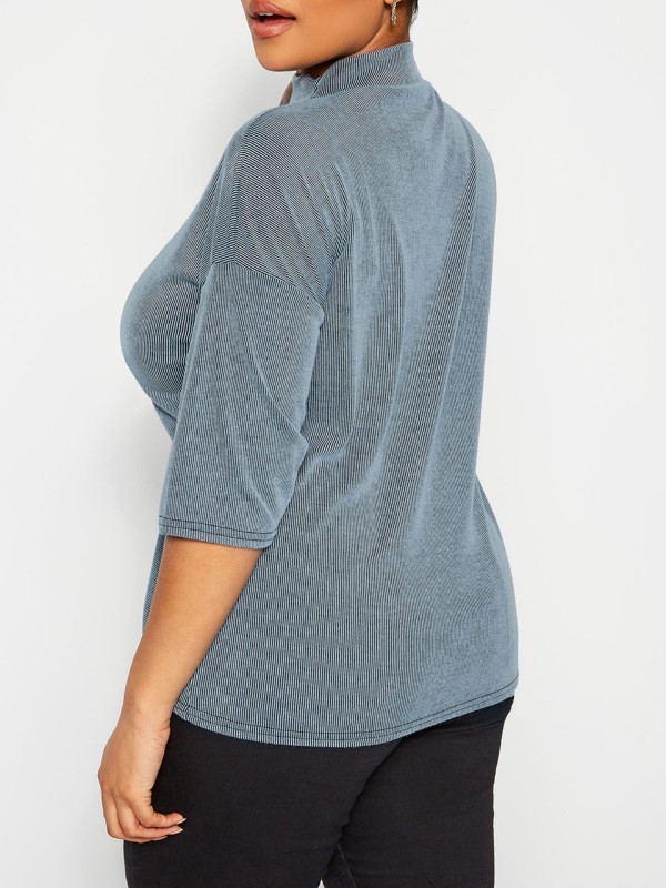 Upgrade your everyday basic collection with this top. It features a ribbed texture with short sleeves and a high neck. Length 28in.