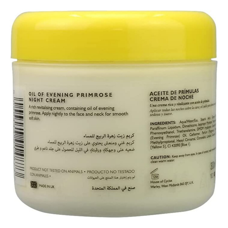 Cyclax Nature Pure Oil of Evening Primrose Night Cream 300ml is a luxurious overnight treatment designed to nourish and revitalize tired skin. Infused with the natural benefits of evening primrose oil, it works deeply to restore skin’s moisture balance. Its rich, creamy texture glides smoothly, leaving the skin feeling soft and supple. The cream helps improve skin elasticity, reducing the appearance of fine lines and wrinkles. Antioxidant properties protect the skin from environmental stressors and premature aging. It supports natural skin regeneration while you sleep, promoting a refreshed morning complexion. Suitable for all skin types, it is gentle yet highly effective for dry and sensitive skin. The non-greasy formula absorbs quickly without leaving residue. Regular use enhances skin tone and texture, leaving it smooth and radiant. Evening primrose oil helps calm irritation and maintain healthy hydration. The cream provides intensive nourishment for dull, stressed, or aging skin. Its soothing formula restores the skin’s natural softness overnight. Dermatologically tested, it is free from harsh chemicals and safe for daily use. The 300ml size ensures long-lasting care for nightly skincare routines. Overall, Cyclax Nature Pure Oil of Evening Primrose Night Cream offers a complete solution for naturally healthy, youthful-looking skin.