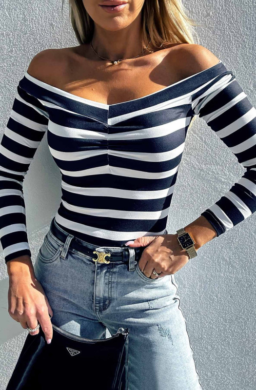Bardot/off shoulder style with long sleeves