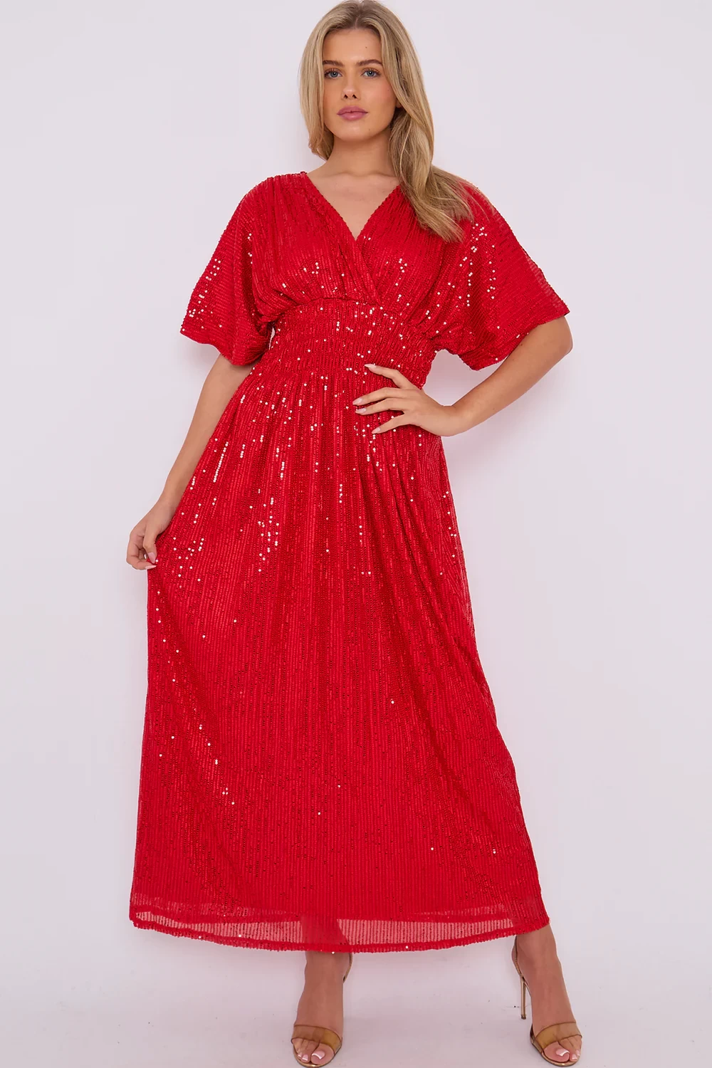 DEMI SEQUIN GAHTHER MAXI - RED