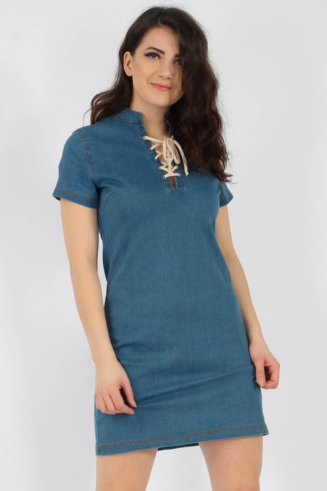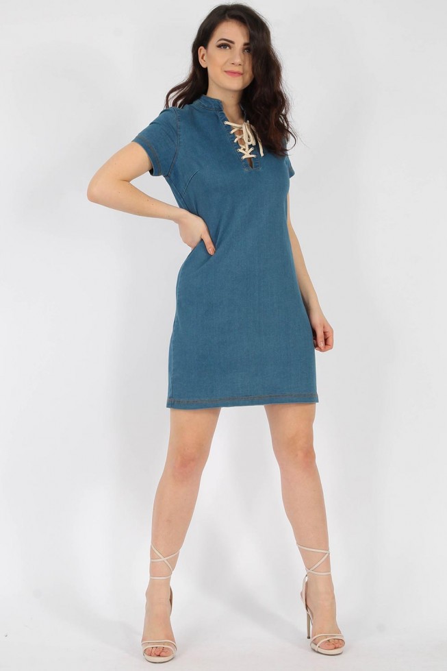 Denim Lace & Eyelet Shift Dress