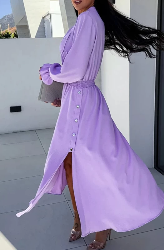 Elevate your summer wardrobe with our stunning Desiree Button Detail Side Slit Maxi Dress. This dress features an open front with button down fastening (top half) and front breasted twin pockets. The shirred elasticated waistband and cuffs adds a touch of elegance, while the stylish side slit with button down fastening creates a chic yet, comfortable look. Crafted in Italy and made from 95% Polyester 5% Elastane. Soft and stretchy and comes in approx. sizes of: S (UK 8) M (UK 10) L (UK 12) XL (UK 14) with an approx. length of: 52"(132cm). Don't miss out on this must-have summer piece for your closet.