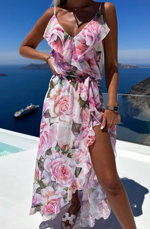 Open front wrap frill detail with added fabric belt fastening