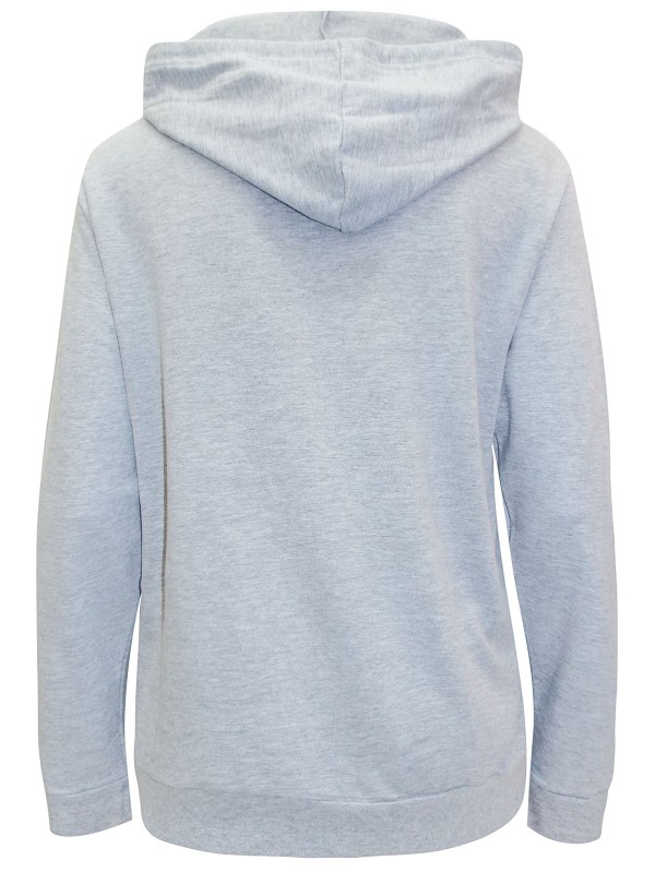 This style has long sleeves and a hood with a drawstring closure. There is a front kangaroo pocket for carrying any essentials. Length 26in.