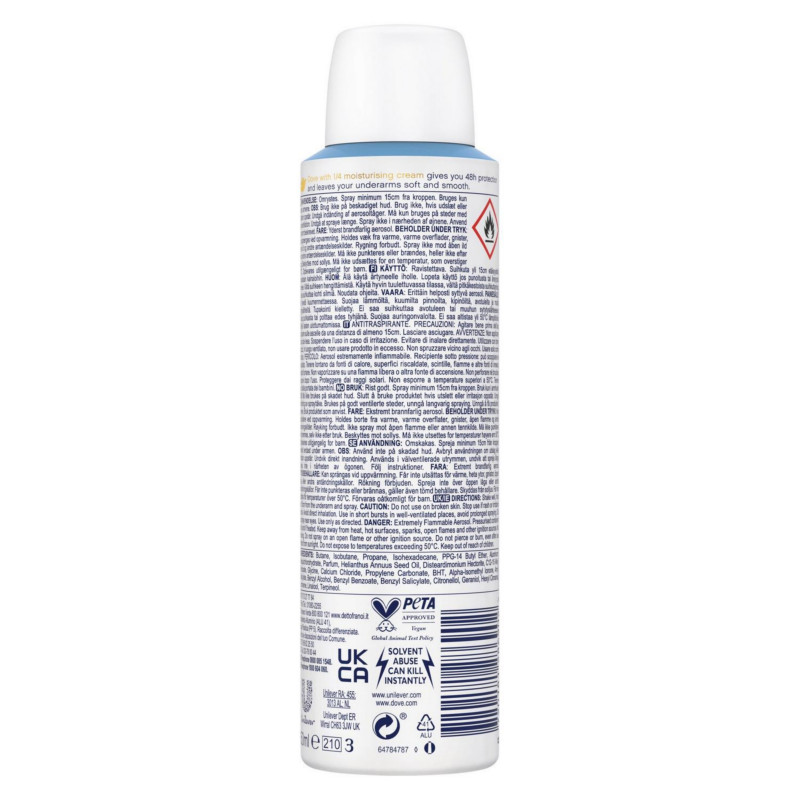 Dove Classic Women's Anti-Perspirant Deodorant Body Spray 150ml provides long-lasting freshness and protection while keeping skin soft and smooth. Its gentle formula helps prevent underarm wetness and odour for up to 48 hours, giving you confidence throughout the day. Enriched with Dove’s signature moisturising cream, it nourishes delicate underarm skin, reducing irritation and leaving a silky, comfortable feel. The classic scent offers a subtle, feminine fragrance that is both refreshing and elegant, suitable for daily use. Quick-drying and non-sticky, it sprays evenly for hassle-free application, ensuring effective coverage with every use. The convenient 150ml size makes it perfect for home, travel, or on-the-go touch-ups. Its anti-perspirant properties help regulate perspiration while maintaining the natural balance of your skin. Lightweight and gentle, it is suitable for all skin types, including sensitive skin. The smooth formula allows easy, even application without leaving residue on clothing. Ideal for active lifestyles, workdays, or special occasions, it keeps you feeling fresh and confident all day long. Its classic Dove care combines effective protection with gentle skincare, enhancing underarm comfort. Compact and easy to carry, it fits perfectly in handbags or gym kits. With reliable anti-perspirant performance and delicate care, Dove Classic Women’s Deodorant Body Spray is an essential for everyday freshness and comfort.